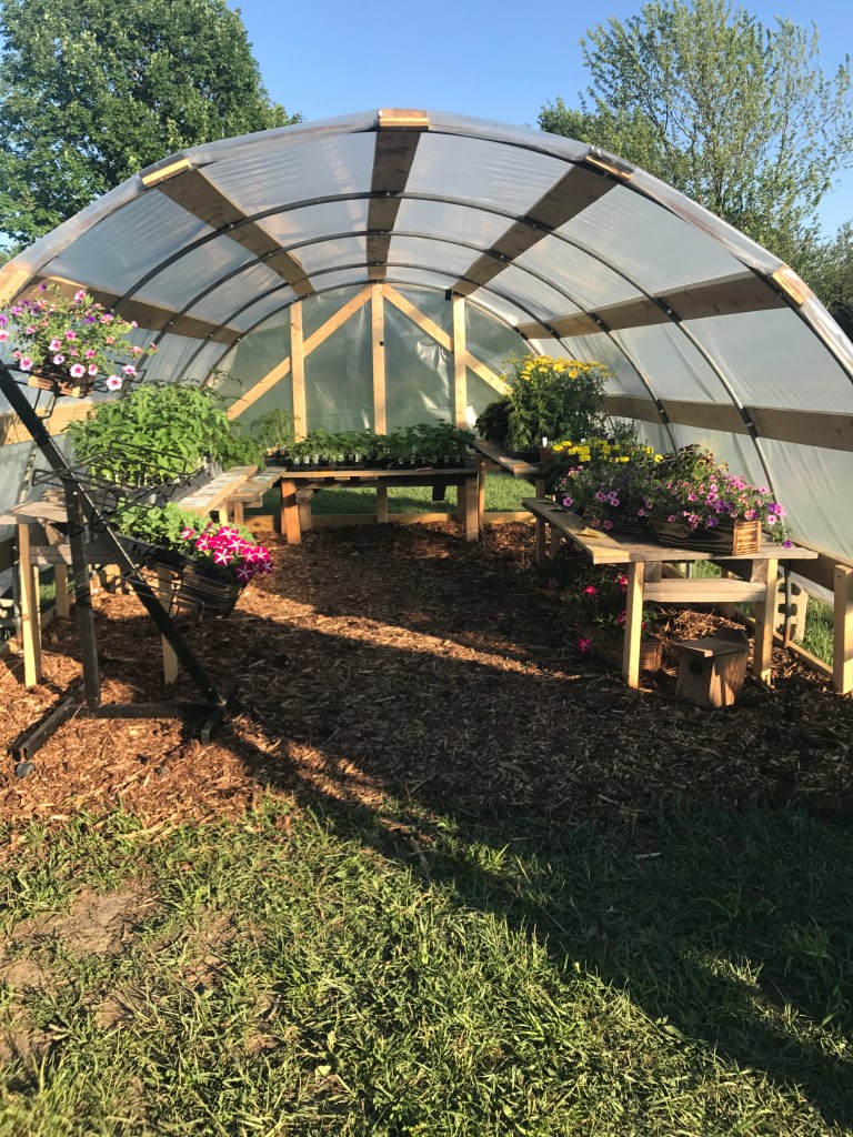 First, I wanted to back up to Spring 2020. I just realized that I forgot to post a picture of the new addition to the stand. We built this structure to protect the plants that we sell from the wind.